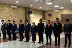 Pringsewu – Bupati Pringsewu Riyanto Pamungkas melantik dan mengambil sumpah jabatan sepuluh pejabat pimpinan tinggi pratama (Eselon II) di lingkungan Pemerintah Kabupaten Pringsewu, Senin (29/12/2025). Pelantikan tersebut merupakan bagian dari upaya penyegaran birokrasi serta penguatan kinerja organisasi perangkat daerah (OPD) guna meningkatkan kualitas pelayanan publik dan tata kelola pemerintahan. Dalam sambutannya, Bupati Riyanto Pamungkas menegaskan […]
