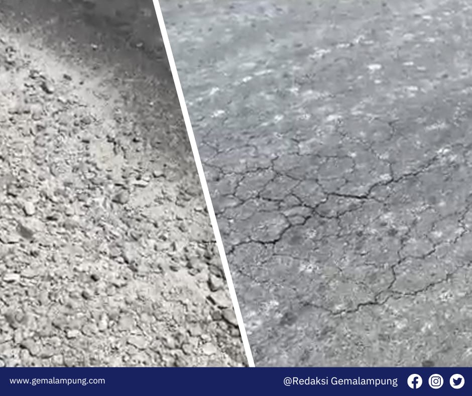 Namun ironi muncul, belum genap satu bulan setelah rampung, kerusakan baru sudah terlihat. Tepat di persimpangan depan kantor Pekon Podomoro, permukaan jalan mulai menunjukkan retakan dan penurunan struktur.