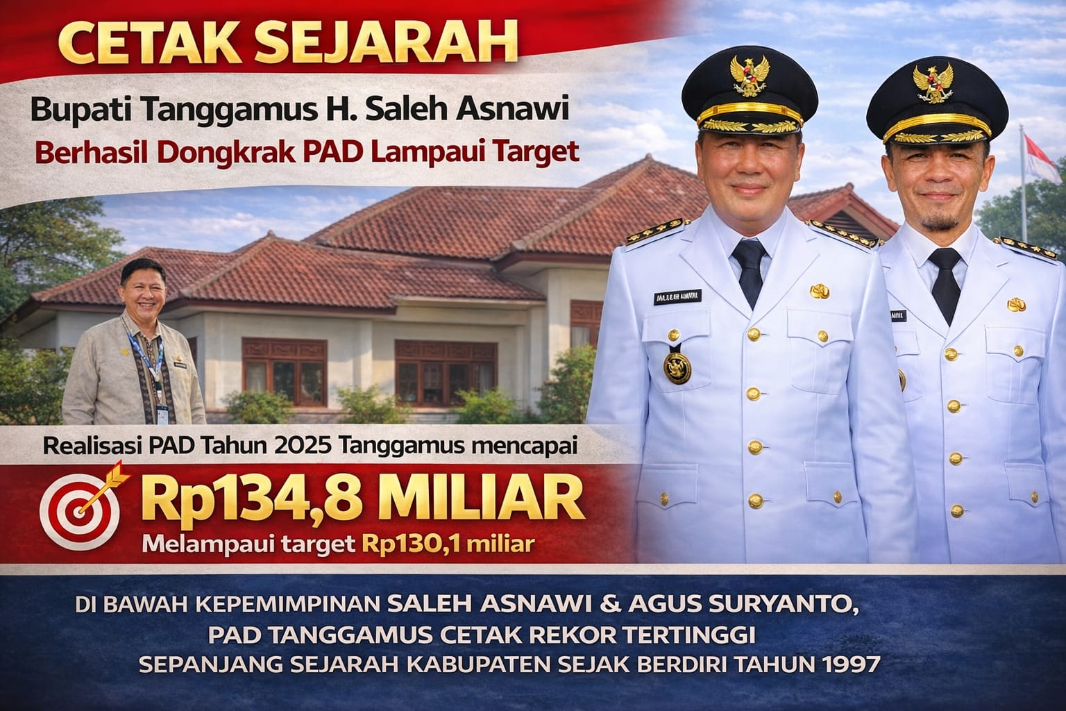 Capaian tersebut menjadi rekor tertinggi sepanjang sejarah Kabupaten Tanggamus dan menandai lonjakan signifikan kinerja pendapatan daerah, meskipun usia kepemimpinan duet Saleh Asnawi–Agus Suryanto belum genap satu tahun.
