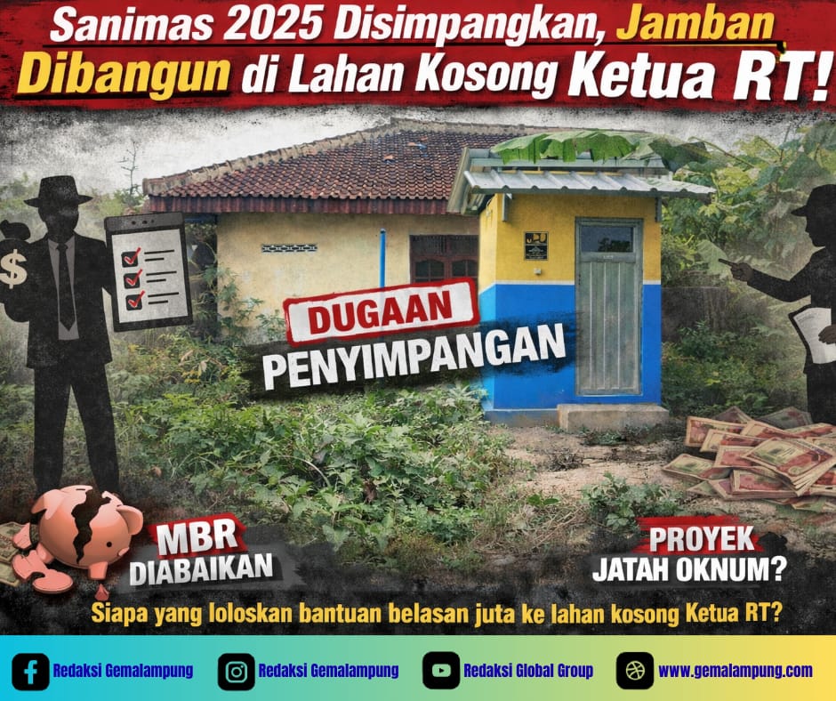 PRINGSEWU – Aroma penyimpangan dalam penyaluran bantuan Sanitasi Berbasis Masyarakat (Sanimas) DAK Fisik 2025 di RT 004/RW 007 Kelurahan Pringsewu Barat, Kecamatan Pringsewu kian menyengat. Program yang semestinya menyasar Masyarakat Berpenghasilan Rendah (MBR) justru diduga “melenceng” dari tujuan, setelah ditemukan pembangunan unit sanitasi berdiri di lahan kosong tanpa rumah, yang disebut milik oknum Ketua RT setempat.