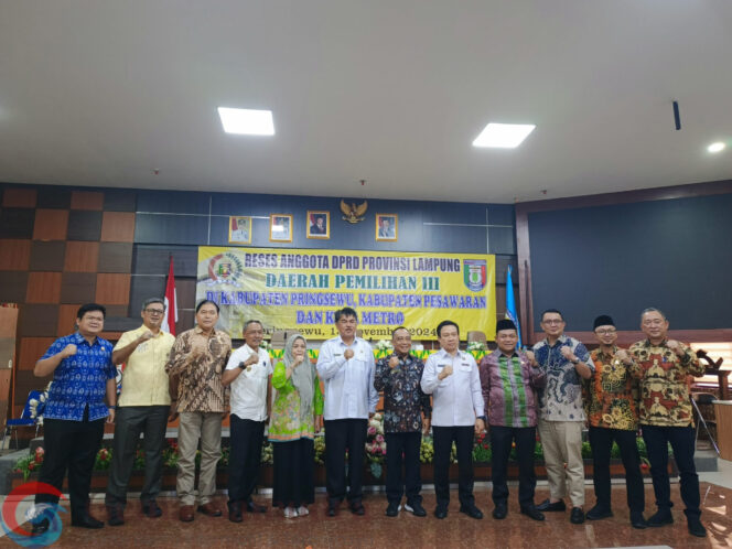 Pringsewu (Gemalampung) – Anggota DPRD Provinsi Lampung Daerah Pemilihan (Dapil) III (Kabupaten Pringsewu, Kabupaten Pesawaran dan Kota Metro) gelar reses ke Pemkab Pringsewu, Rabu (13/11/24) di aula utama Pemkab setempat.