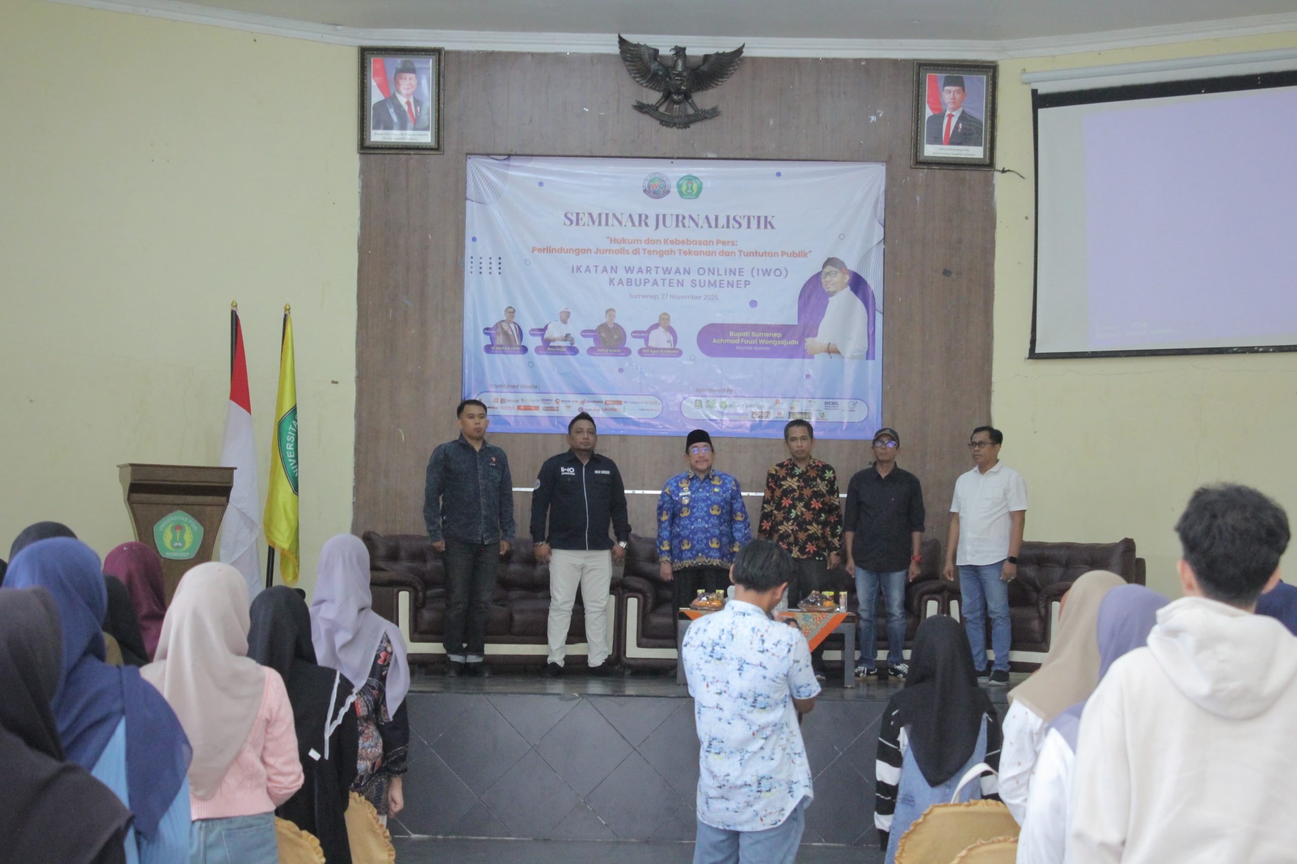 SUMENEP (Jatim) — Ikatan Wartawan Online (IWO) Kabupaten Sumenep menggelar seminar jurnalistik bertema “Hukum dan Kebebasan Pers: Perlindungan Jurnalis di Tengah Tekanan dan Tuntutan Publik” di Graha Kemahasiswaan Universitas PGRI (UPI) Sumenep, Kamis (27/11/2025). Acara ini menjadi forum penting untuk membahas ancaman terhadap kebebasan pers dan meningkatnya risiko kriminalisasi jurnalis di era digital.