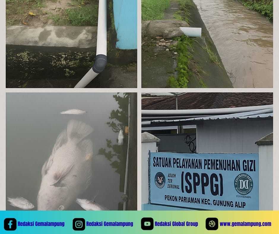 “Ikan sudah siap panen, tapi tiap sore banyak yang ngambang mati. Penyebabnya limbah bekas cucian dari dapur MBG yang dibuang ke saluran irigasi,” keluh salah seorang warga setempat.