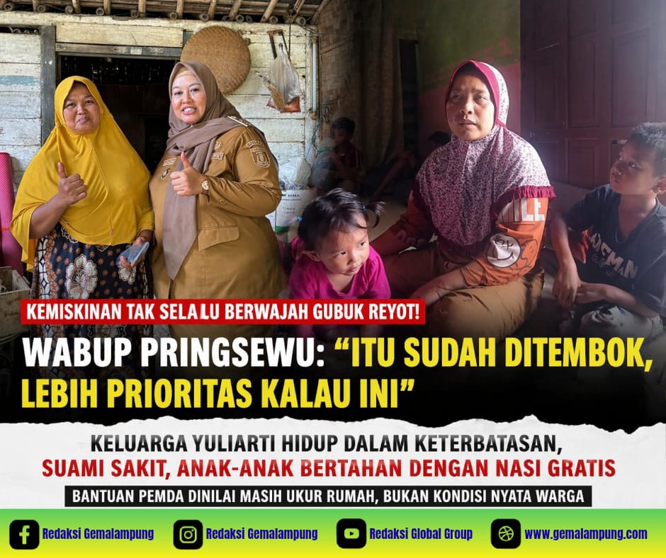 PRINGSEWU – Kemiskinan tak selalu berwajah gubuk reyot. Di Pringsewu, ironi itu nyata. Sebuah rumah berdinding tembok justru menyimpan cerita getir tentang keluarga yang nyaris tak punya apa-apa untuk bertahan hidup.
