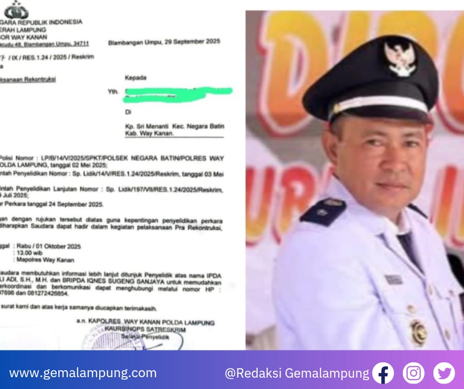 “Penyidik akan melayangkan panggilan kedua terhadap kelima terlapor pada Selasa, 20 Januari 2026,” ujar pihak Unit PPA Satreskrim Polres Way Kanan saat dikonfirmasi.
