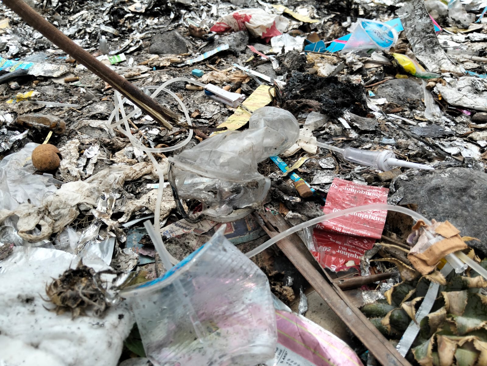 Temuan itu bukan sekadar sampah biasa, melainkan jarum suntik bekas, selang infus, hingga wadah obat-obatan yang jelas termasuk kategori limbah B3 (Bahan Berbahaya dan Beracun).