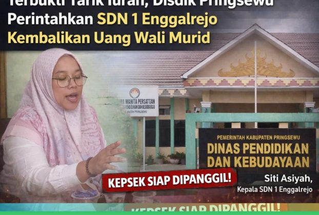 Pringsewu – Praktik pengumpulan uang dari wali murid di SDN 1 Enggalrejo, Kecamatan Adiluwih, akhirnya terbukti. Dinas Pendidikan Kabupaten Pringsewu pun bergerak cepat dengan memerintahkan agar seluruh dana yang telah ditarik segera dikembalikan. Kepala Bidang Pendidikan Dasar Dinas Pendidikan Pringsewu, Iswanto, mengungkapkan bahwa hasil konfirmasi langsung kepada kepala sekolah membenarkan adanya pengumpulan dana melalui Komite […]