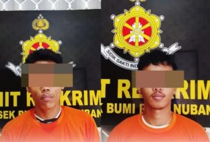 Lampung Tengah — Tim Tekab 308 Presisi Polsek Bumiratu Nuban, Polres Lampung Tengah, Polda Lampung, mengamankan dua warga yang tengah asyik mengonsumsi narkotika jenis sabu pada Selasa (18/11/2025) sekitar pukul 21.30 WIB. Penangkapan berawal dari laporan masyarakat yang mencurigai adanya aktivitas penyalahgunaan narkoba di wilayah tersebut. Menindaklanjuti laporan itu, petugas langsung menuju lokasi dan mendapati […]