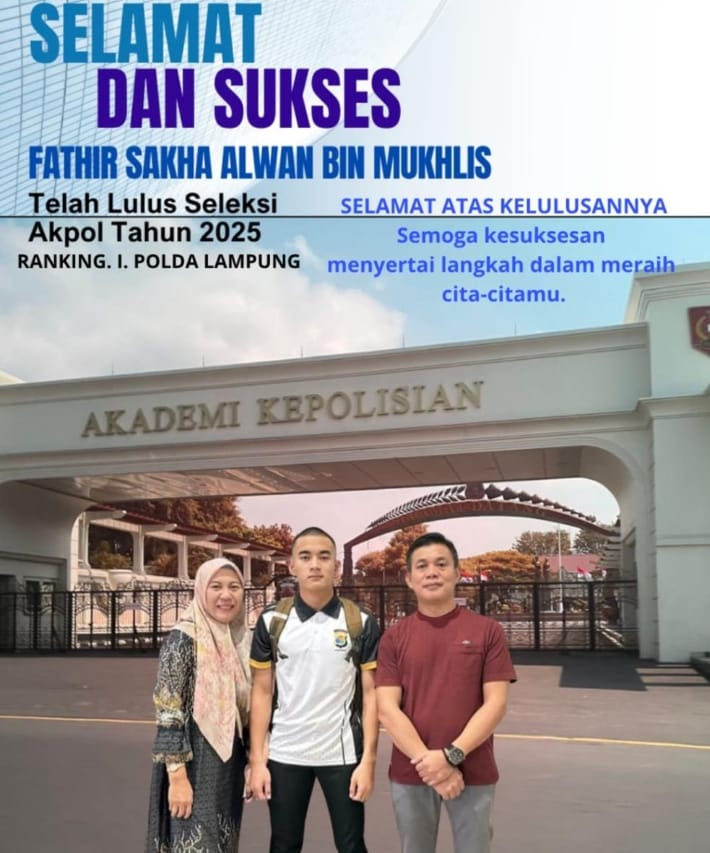 “Alhamdulillah, siswa MAN 1 atas nama Fathir Sakha Alwan dinyatakan lulus dan diterima di Akpol Semarang tahun 2025. Selain itu, sekitar 93 persen alumni kami juga diterima di kampus-kampus negeri terkemuka di Indonesia, termasuk Universitas Negeri di Lampung,” ujar Lukman Hakim.