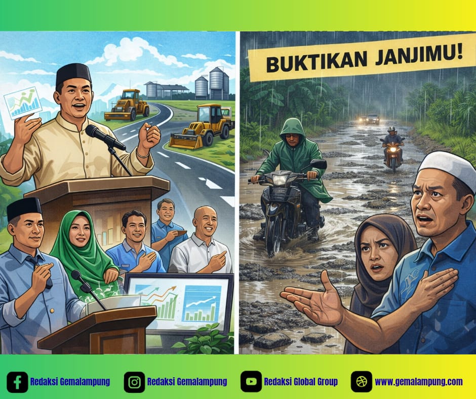 Bagi warga Pringsewu, pembangunan belum bisa disebut berhasil selama setiap musim hujan datang, jalan berubah menjadi kubangan, dan keselamatan masih harus dipertaruhkan di atas lubang yang tak kunjung diperbaiki. (Redaksi)