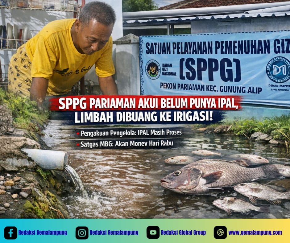 TANGGAMUS – Fakta mencengangkan terungkap dari pengelolaan Dapur Makanan Bergizi Gratis (MBG) SPPG Pekon Pariaman, Kecamatan Gunung Alip. Di tengah keluhan warga soal kematian ikan, pihak pengelola justru mengakui dapur tersebut belum memiliki Instalasi Pengolahan Air Limbah (IPAL).