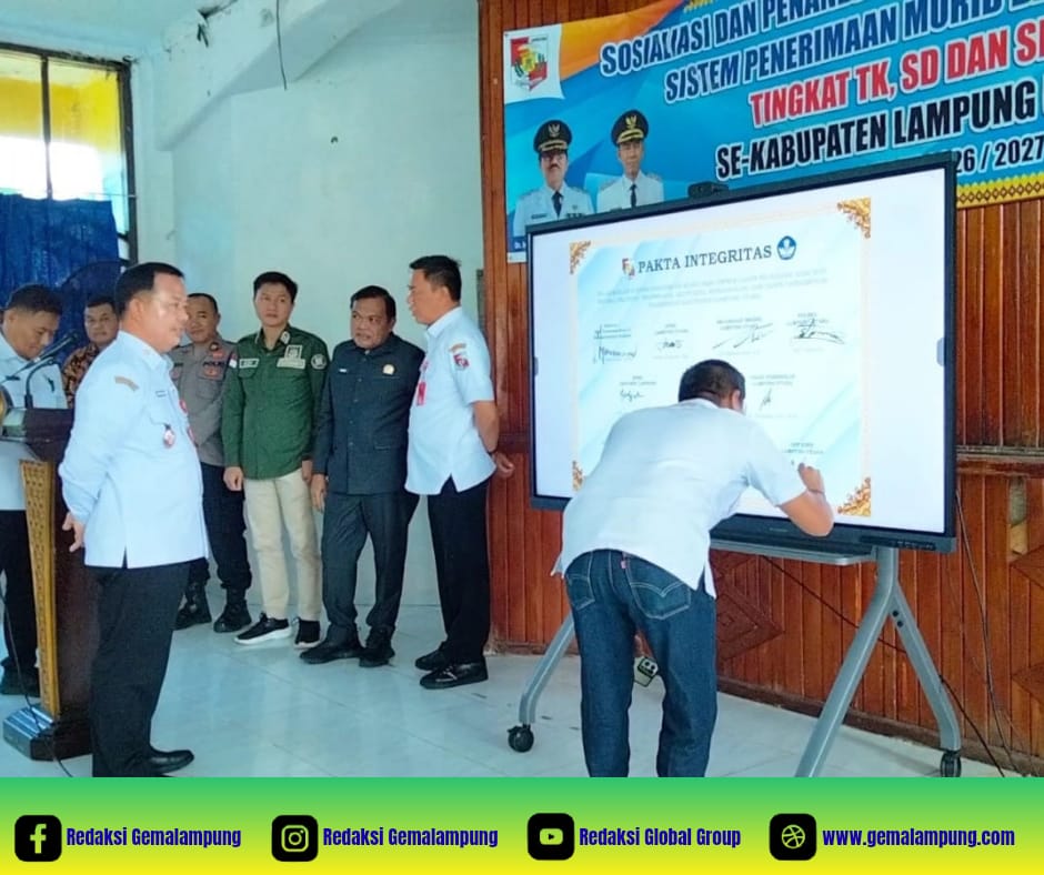 KOTABUMI – Dinas Pendidikan (Disdik) Kabupaten Lampung Utara resmi memulai tahapan Penerimaan Peserta Didik Baru (PPDB) melalui agenda Sosialisasi dan Penandatanganan Pakta Integritas Sistem Penerimaan Murid Baru (SPMB) tingkat TK, SD, dan SMP untuk Tahun Pelajaran 2026/2027. Acara ini berlangsung khidmat di Gedung Korpri Kotabumi pada Rabu, 22 April 2026.